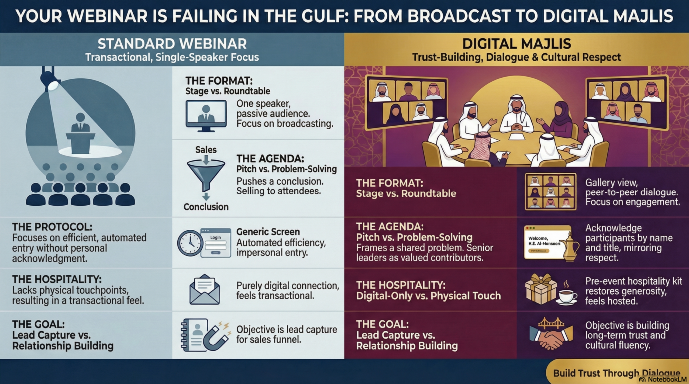 For years, global B2B teams have treated the Gulf like any other market. They deploy the same webinar format that works in London or New York, a long presentation followed by a brief, often silent Q&A.